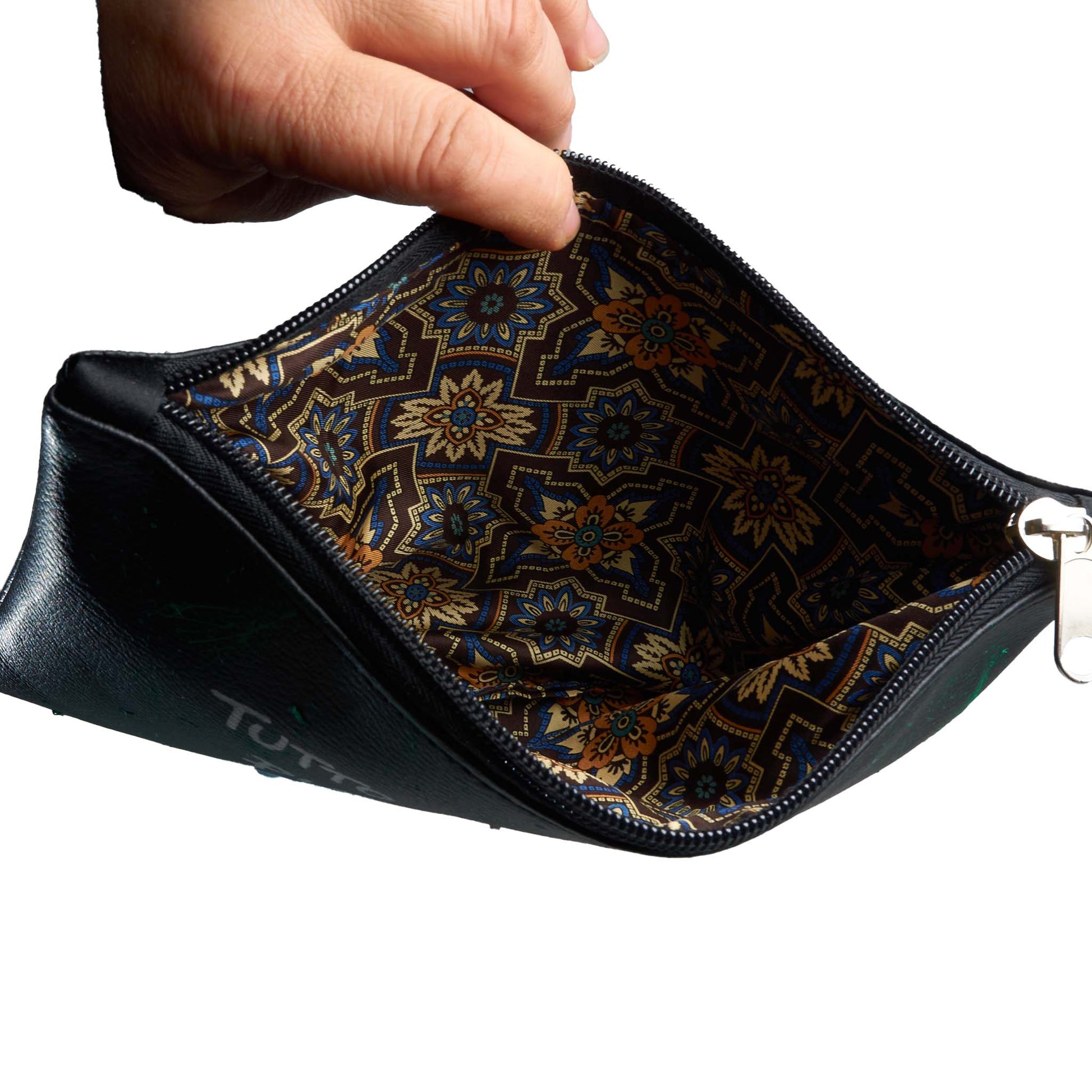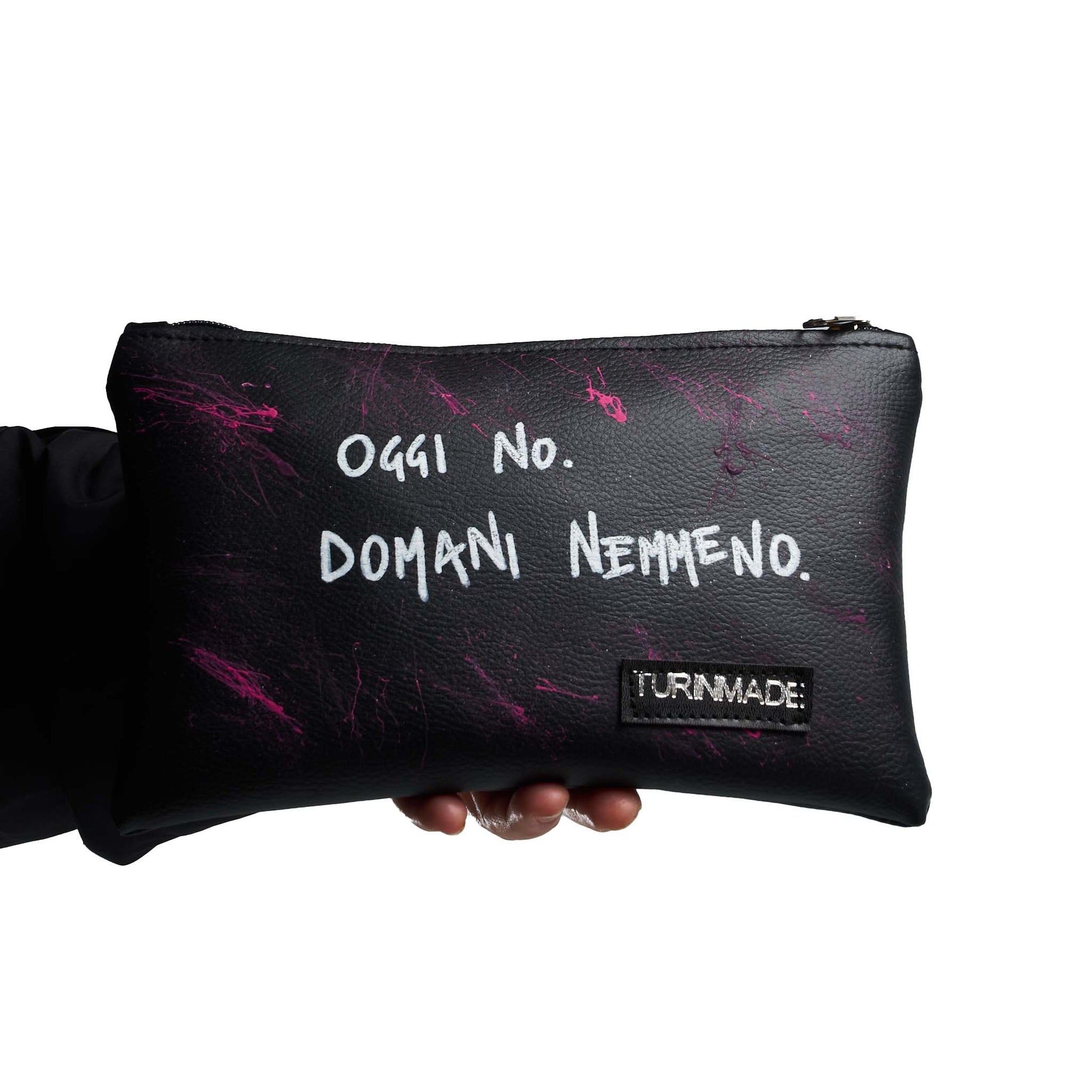 Le nostre pochette sono in finta pelle, e foderate uniscono praticità e carattere: ogni frase stampata è un messaggio leggero, un sorriso da portare con sé.