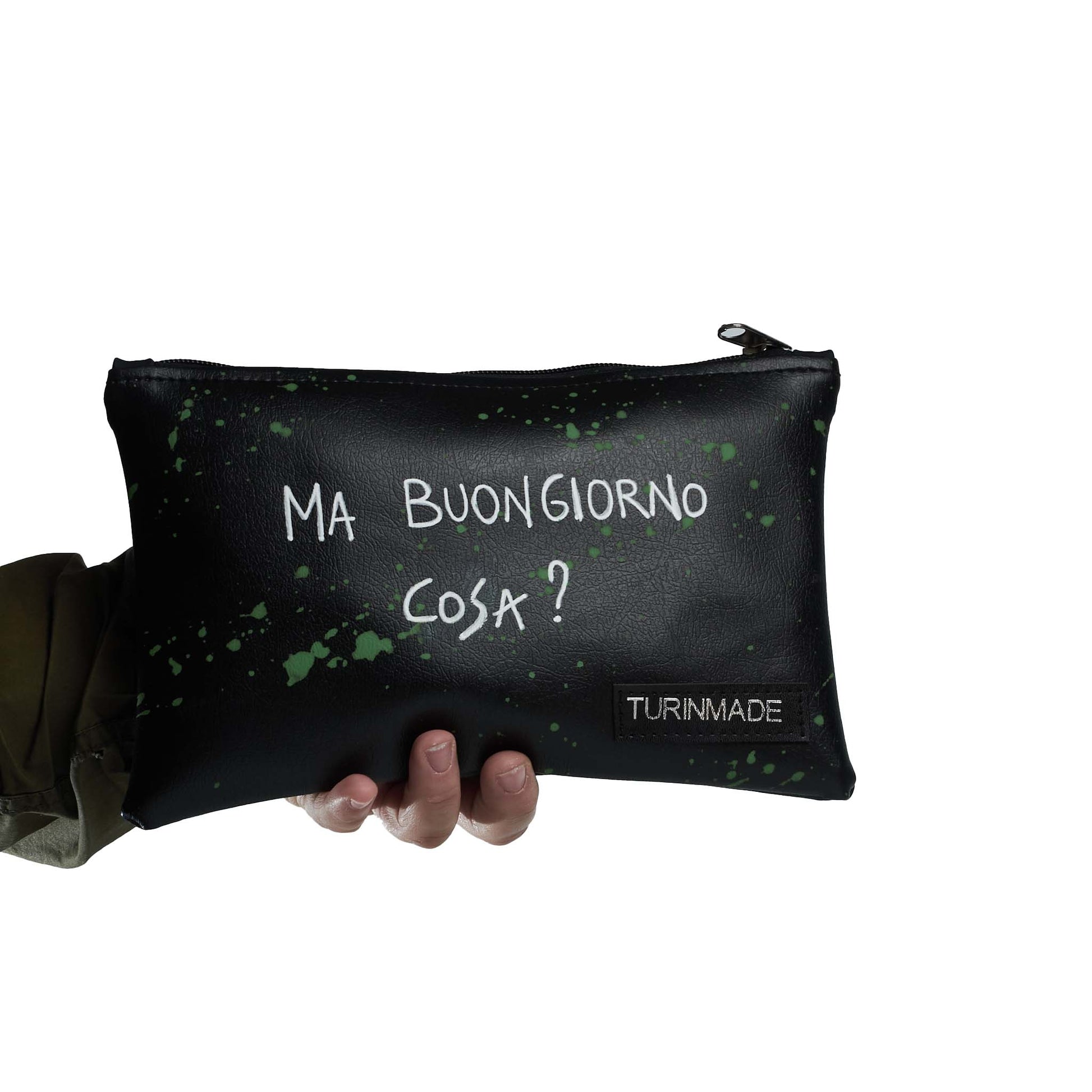 Le nostre pochette sono in finta pelle, e foderate uniscono praticità e carattere: ogni frase stampata è un messaggio leggero, un sorriso da portare con sé.