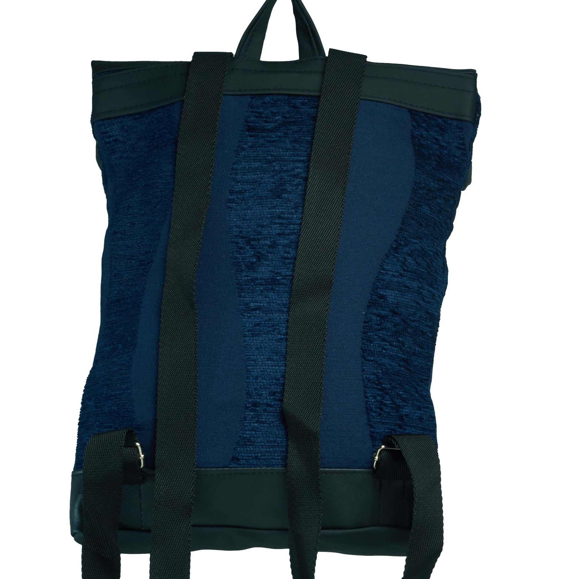 - tessuto jacquard fantasia geometrica blu scuro +ecopelle nera.