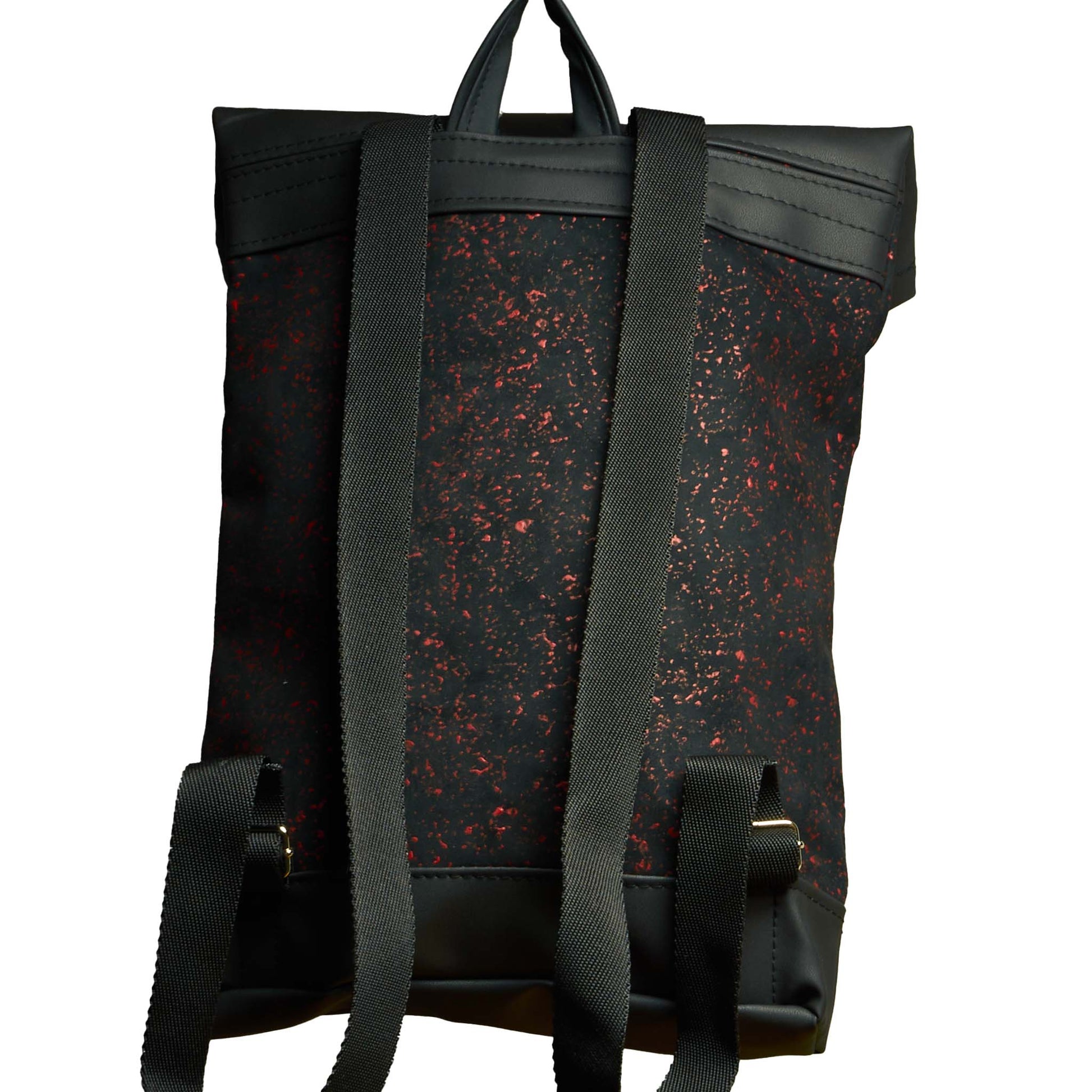 - tessuto tecnico spruzzi bordeaux +ecopelle nera.