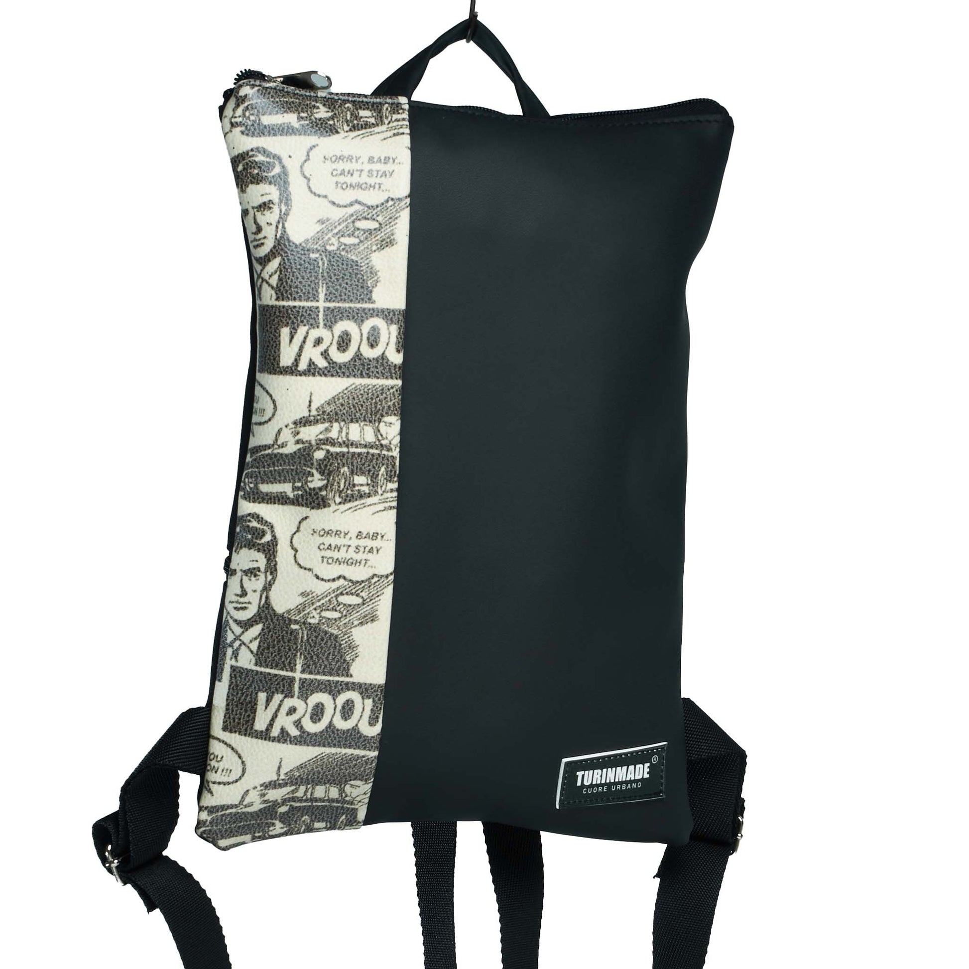 Dai un tocco di personalità al tuo look con lo Zainetto MINI bipolare patchwork 1! Realizzato artigianalmente con materiali di alta qualità ecopelle nera con fascia ecopelle stampato fumetto, con uno schienale in tessuto tecnico, questo zainetto è resistente e impermeabile. Con dimensioni di 24x35 cm, è perfetto per ogni avventura. Non solo stile, ma anche funzionalità!