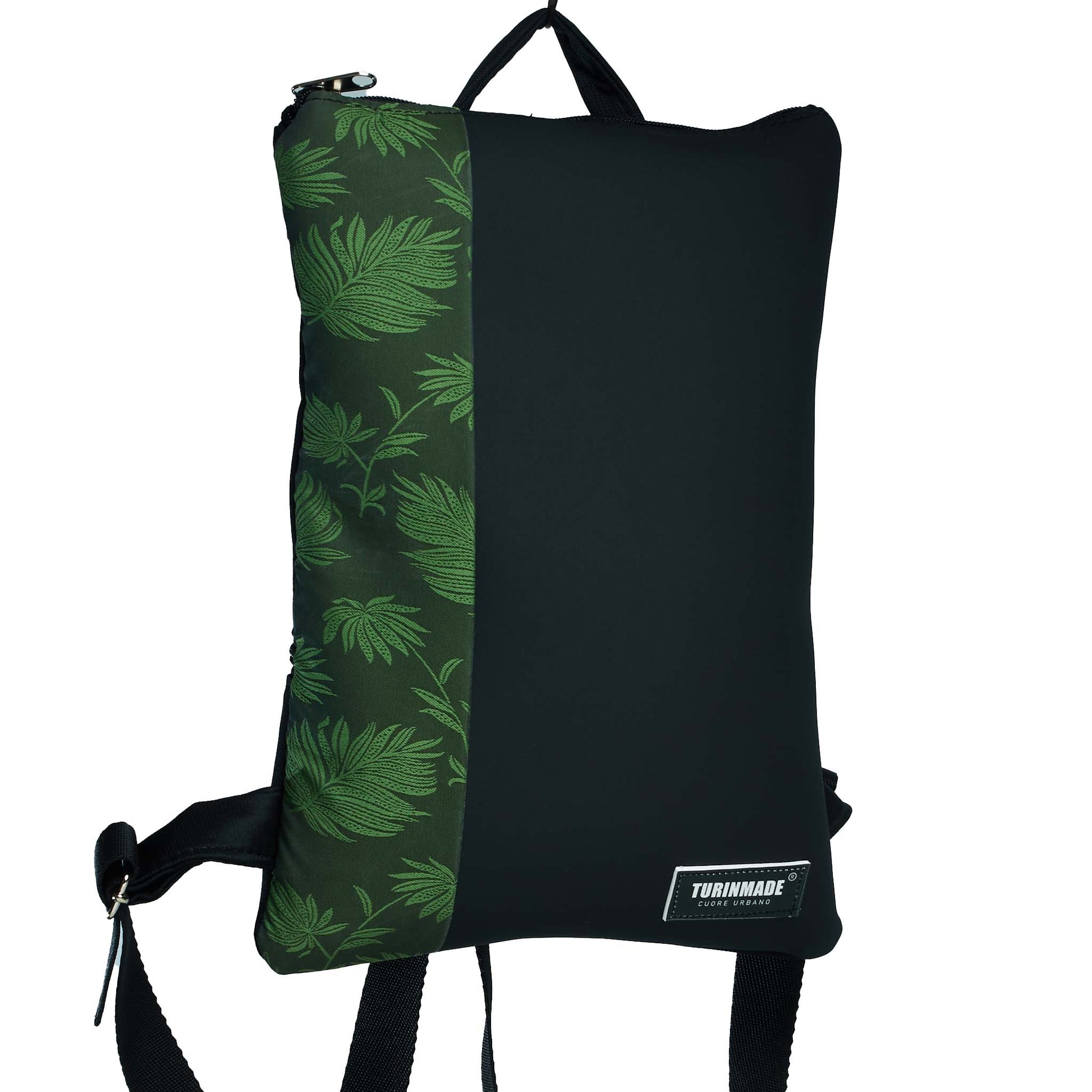 Esprimi il tuo stile con Zainetti MINI bipolare patchwork. Realizzato artigianalmente con materiali di alta qualità, con patchwork in ecopelle con fascia in tessuto stampato foglio verde in fantasia, la parte esterna e interna con schienale in tessuto tecnico riciclato dai materiali dell'auto, sono resistenti all'abrasione e all'acqua. Dimensioni di 24x35 cm, lo zaino ha spallacci regolabili in gro 3 cm. Per una maggiore sicurezza, la fibbia scorrevole in acciaio.