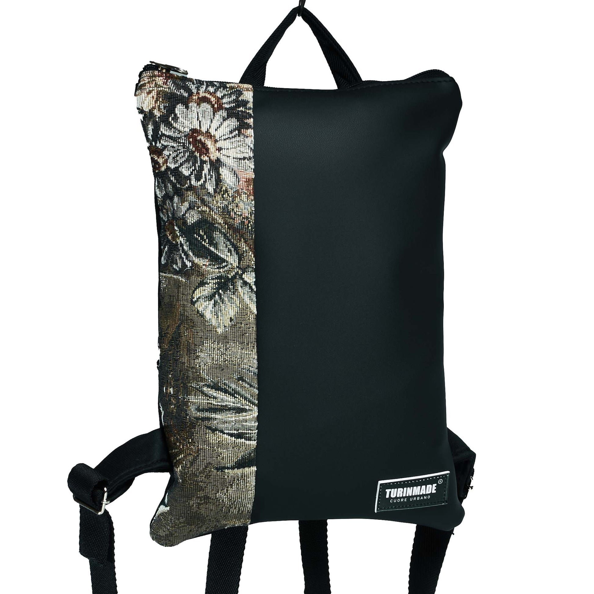 Esprimi il tuo stile con Zainetti MINI bipolare patchwork. Realizzato artigianalmente con materiali di alta qualità, con patchwork in ecopelle con fascia in jacquard fantasia, la parte esterna e interna con schienale in tessuto tecnico riciclato dai materiali dell'auto, sono resistenti all'abrasione e all'acqua. Dimensioni di 24x35 cm, lo zaino ha spallacci regolabili in gro 3 cm. Per una maggiore sicurezza, la fibbia scorrevole in acciaio.