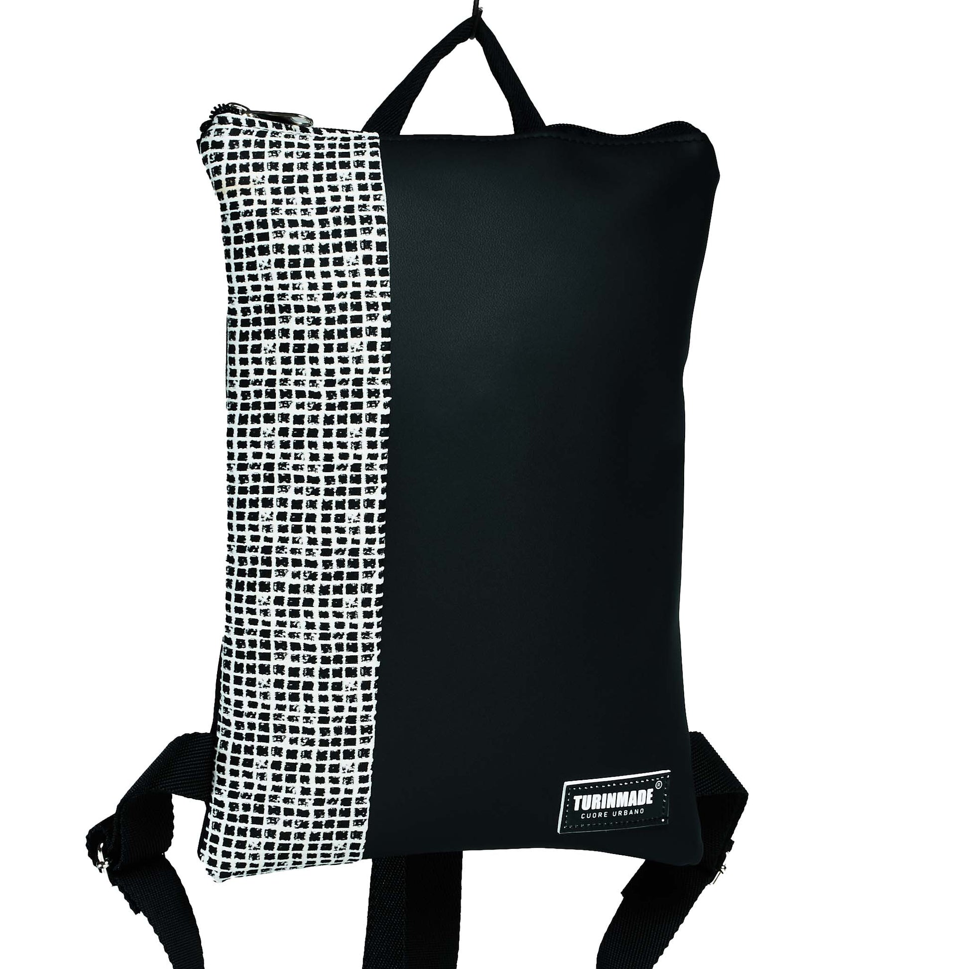 Esprimi il tuo stile con Zainetti MINI bipolare patchwork. Realizzato artigianalmente con materiali di alta qualità, con patchwork in ecopelle con fascia in tessuto stampato bianco nero in fantasia, la parte esterna e interna con schienale in tessuto tecnico riciclato dai materiali dell'auto, sono resistenti all'abrasione e all'acqua. Dimensioni di 24x35 cm, lo zaino ha spallacci regolabili in gro 3 cm. Per una maggiore sicurezza, la fibbia scorrevole in acciaio.