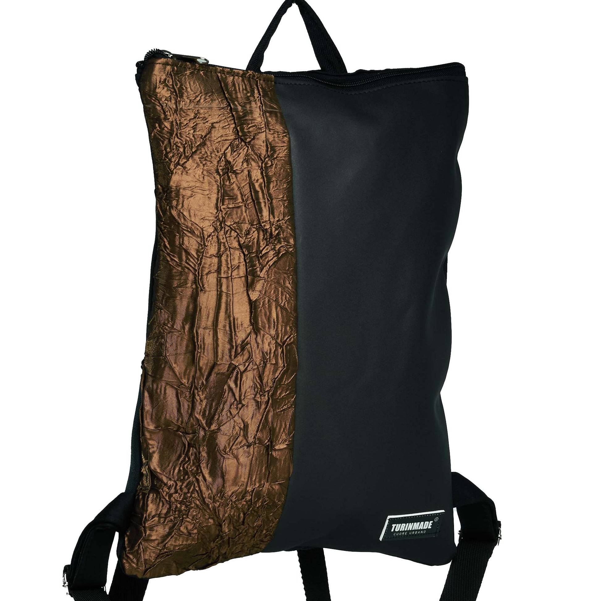 - La parte esterna in ecopelle nera +tessuto bronzo stropicciato