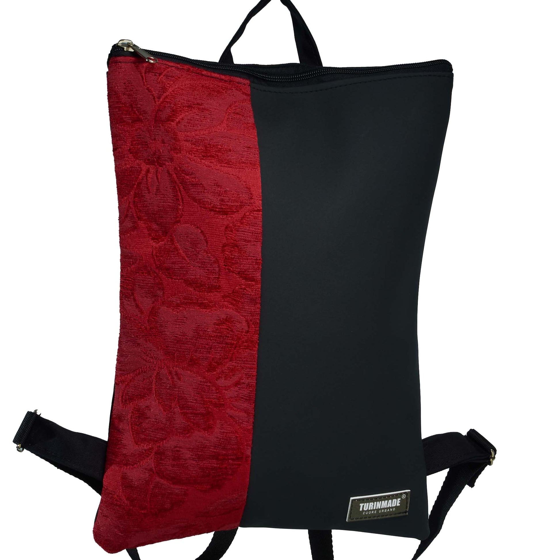 - La parte esterna in ecopelle +tessuto fantasia jacquard rosso tinta su tinta