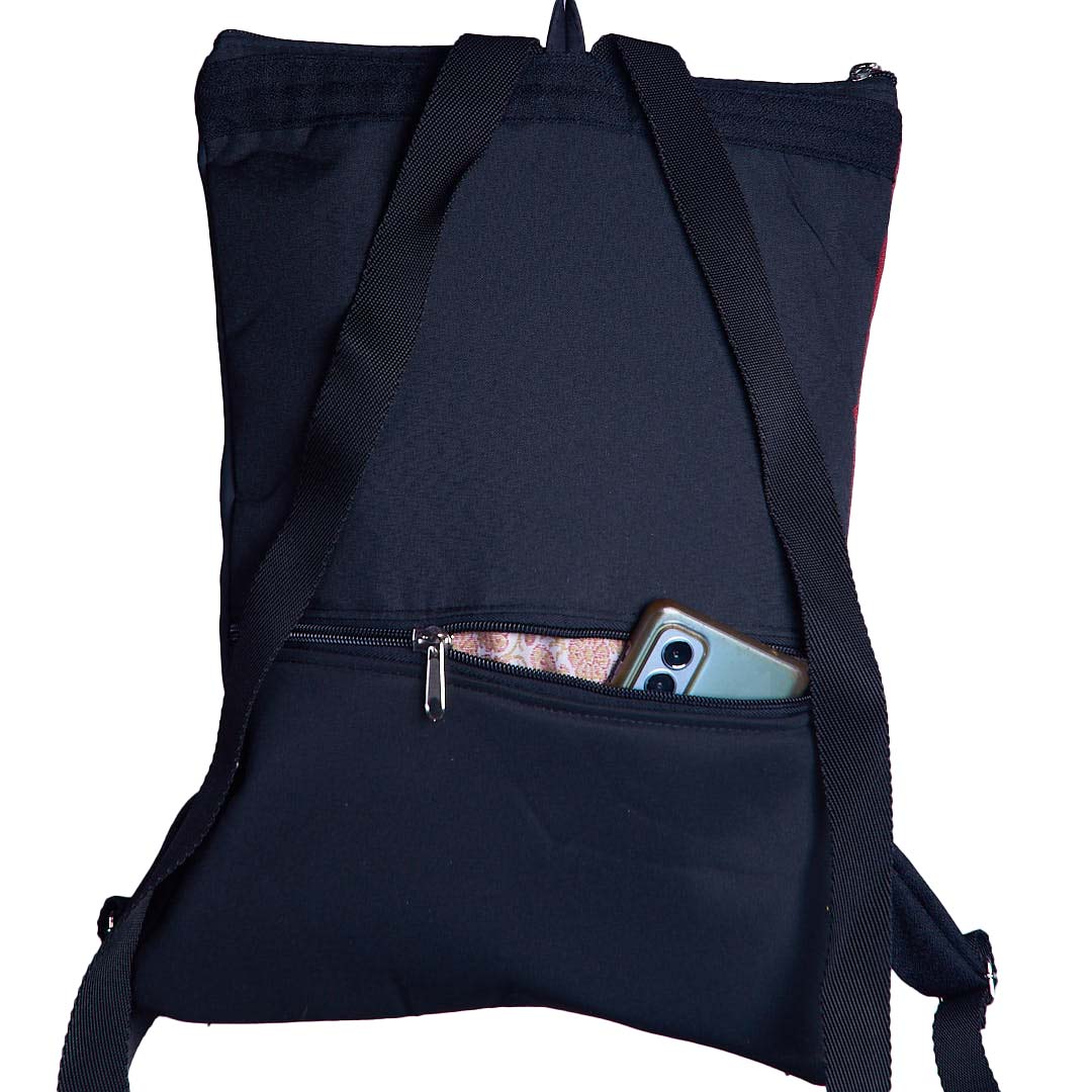 Esprimi il tuo stile con questo zaino handmade bipolare 32! Misura 43x32cm. Realizzato con una combinazione di ecopelle di alta qualità e tessuto resistente all'acqua, questo zaino di design ha una tasca esterna, schienale in neoprene riciclato dagli interni di auto, spallacci regolabili in gro di 3 cm, e fibbia scorrevole in acciaio. Questo accessorio altamente resistente all'abrasione è anche disponibile in una varietà di design e colori!