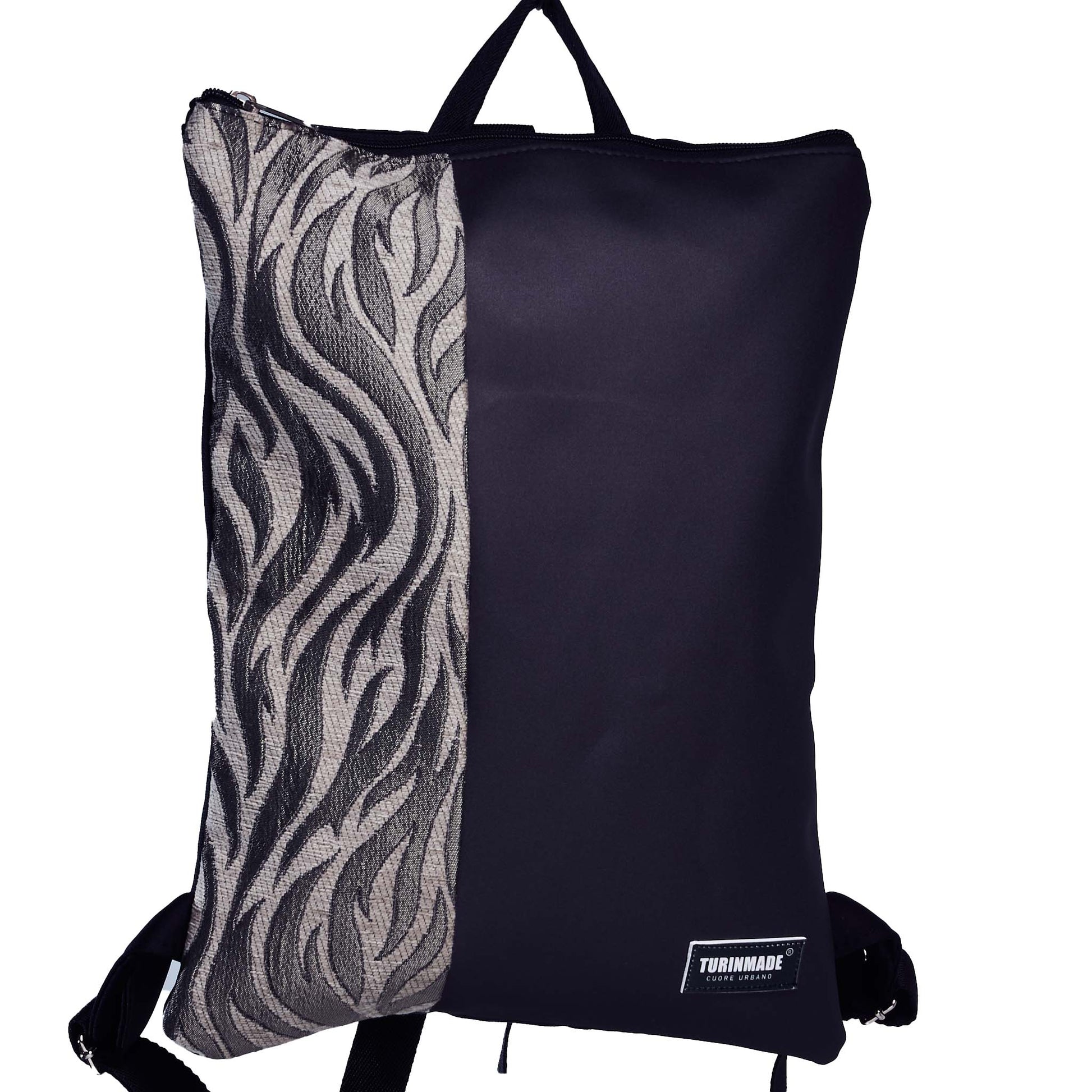 Il nostro Zaino patchwork bipolare 39 offre un look accattivante ed è perfetto per organizzare i vostri libri, portatili, tablet e altri oggetti. Misura 43x32cm ed è realizzato in tessuto di ecopelle con fascia in jacquard in fantasia ,resistente all'usura, impermeabile, inodore, traspirante e ipoallergenico. Spallacci regolabili, due tasche con cerniera, una posteriore più piccola e una superiore più ampia, entrambe progettate per soddisfare le vostre esigenze. Interno foderato.